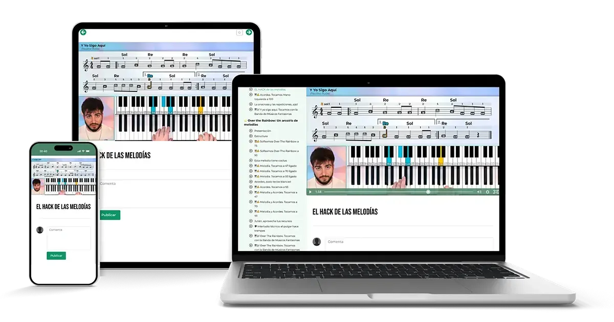 Podrás hacer los cursos de Musihacks en todos los dispositivos, tanto desde nuestra web en ordenador de escritorio, como desde una tablet o un móvil.